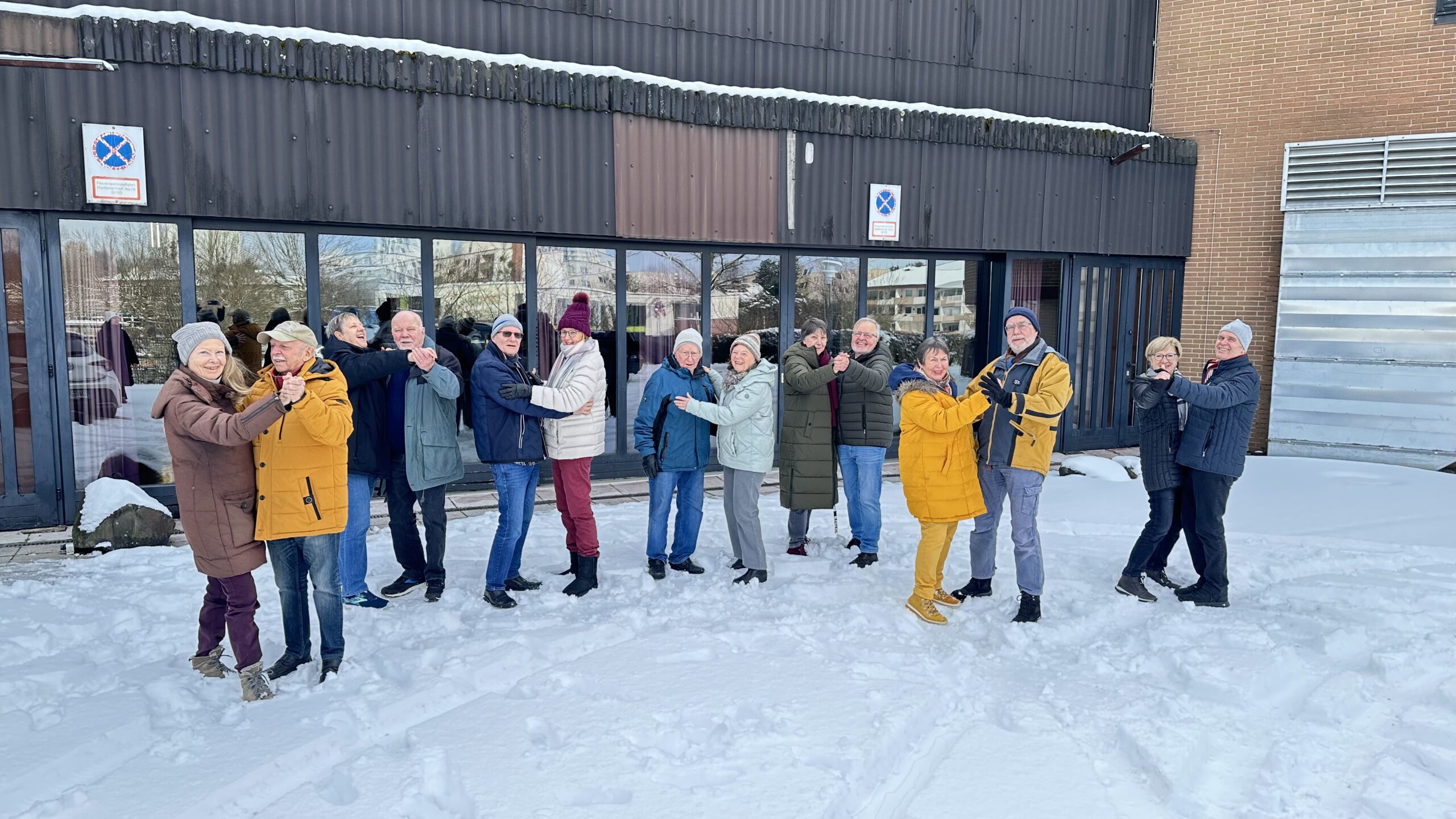 Im vergangenen Monat führte die Gruppe eine spontane Aktion mit ihrem „Schneewalzer“ durch. Vor dem Bürgerhaus nutzten die Paare die weiße Pracht, versammelten sich in Winterkleidung zu einem Walzer vor den Toren. Diese lustige Einlage machte allen viel Spaß und war eine schöne Abwechslung – trotz Kälte und Schnee haben dies alle Teilnehmer genossen.